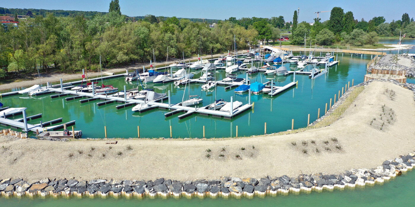 Die Gemeinde Münsterlingen plant die Aufhebung der Bojenplätze beim Camping Möwe und der Badi Scherzingen. Rund 180 neue Bootsplätze sollen am neuen Standort «Hafenfäld» entstehen. Der Hafen soll mit zwei geschütteten Molen vor Wellen geschützt werden. Von einem Ponton aus werden Seegrundausbaggerungen ausgeführt. Des Weiteren werden Unterwasserriffe, eine Einwasserungsrampe, Stahlstege, Werkleitungen, ökologische Massnahmen und eine Vogelbeobachtungsplattform ausgeführt. |