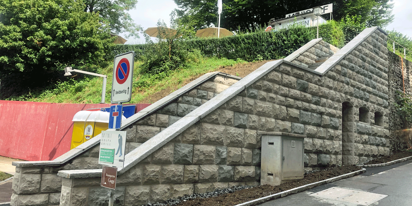 | Projektbeschrieb: | Stadtbefestigung aus dem 15. Jahrhundert, Instandstellung in enger Zusammenarbeit mit der Denkmalpflege, Steinersatz, abschnittsweise Wiederaufbau des Mauermantels, Setzen von Verankerungen in den Mauerkern, Reinigen und neu Verfüllen der Fugen, Ableitung des Wassers hinter der Mauer, Neukonstruktion des Treppenaufgangs |
