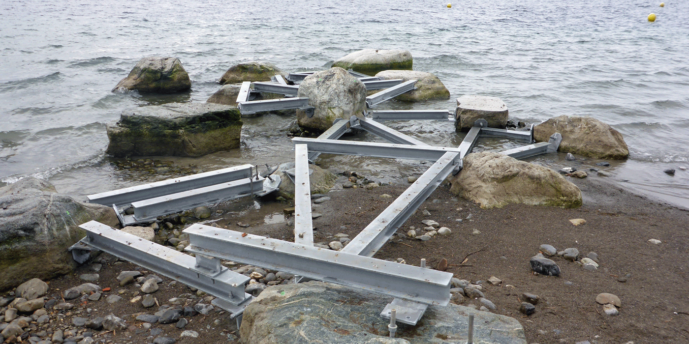 Das Strandbad Chamerfussweg in Zug wird saniert. SK& zeigt sich für sämtliche Wasserbauarbeiten verantwortlich und begleitet derzeit die Realisierung. Der neue Strand und Flachwasserbereich wird künftig mit zwei Buhnen gesichert. Die Buhnen bestehen aus Kies und bis zu 20 Tonnen schweren Findlingen. Diese Findlinge werden im Seegrund eingebunden und bilden später das Fundament für einen Badesteg. |