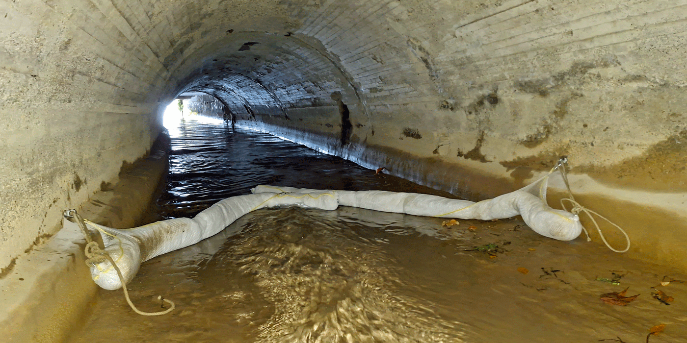 Ölsperre im Kanal