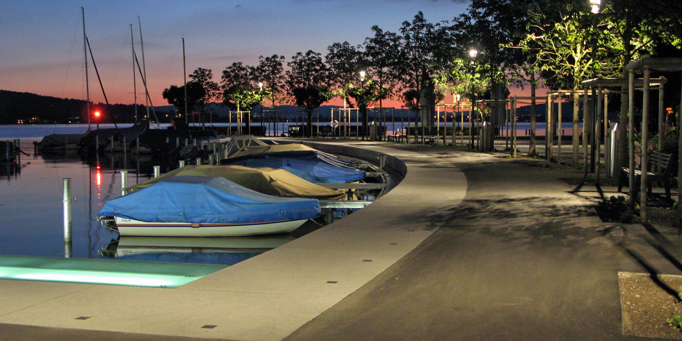 Projektbeschrieb: | Sanierung und Ausbau Hafen, Neubau von Stegen, Plattformen und Bootslift, Neubau öffentlicher Schiffsteg, Hafengebäude, Badebereich, naturnaher Uferbereich |