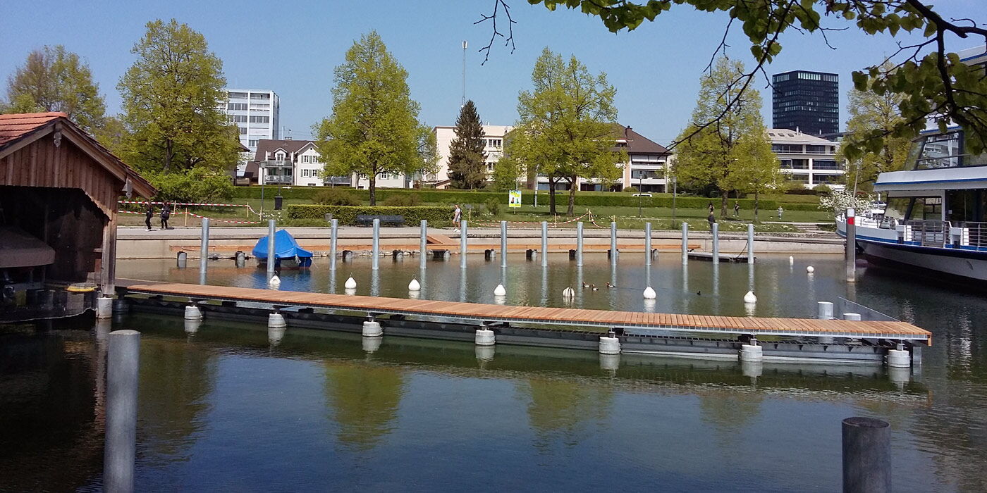 Projektbeschrieb: | Ersatz der Schwimmstege, Installation von Versorgungssäulen, Sanierung und Neubau Ufermauer |