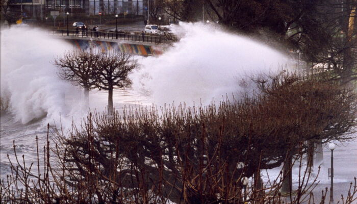 Die Bilder zeigen eindrückliche Wellen die bei Orkanstürmen auftreten können. Bei der Dimensionierung unserer Bauwerke am und im Wasser spielen diese dynamische Kräfte eine massgebende Grösse.
