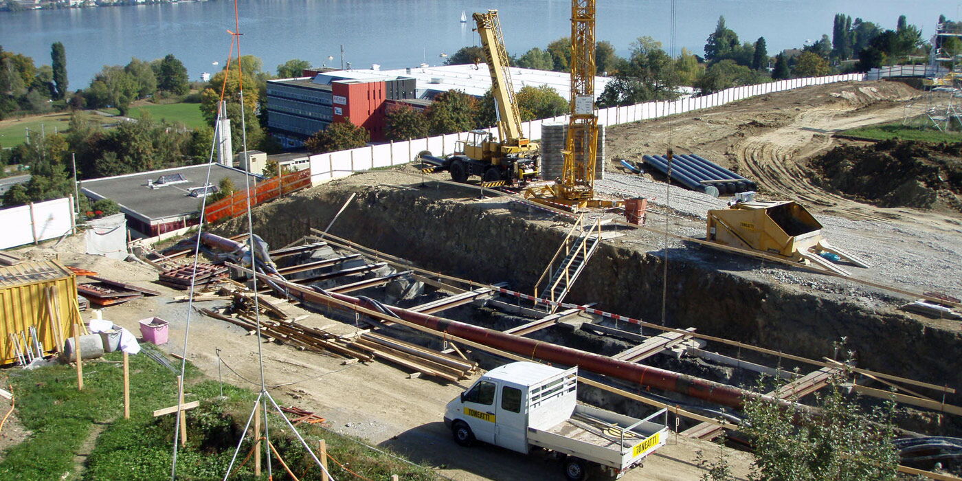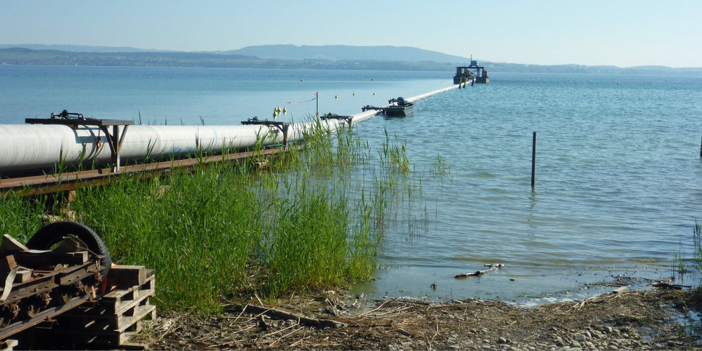 | Projektbeschrieb: | Neubau von zwei neuen Seewasserfassungsleitungen, landseitig mit Spülbohrung und Uferschacht |